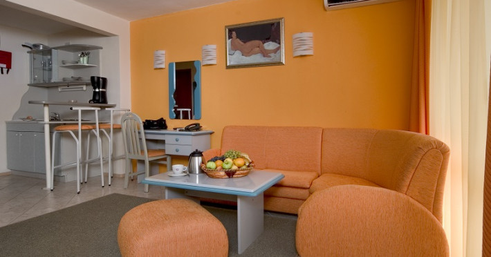 Toate camerele dispun de aer conditionat individual, televizor cu programe prin cablu, Wi-Fi, balcon, baie cu dus. In plus fata de camerele duble, studiourile dispun si de chicineta, frigider, fierbator de apa.