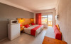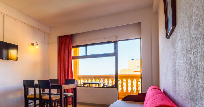 About 300 m from a public sandy beach is located the aparthotel Apartamentos Isla del Sol. The nearest restaurants and bars can be found within 200 m. The old town is around 5 km away. The nearest shops you can reach within around 1 km, a supermarket is just a few metres away from the hotel. There is a shuttle between the hotel and the airport (for a fee). Nearby there is a disco which offers entertainment in high season. The beach is awarded a blue flag. Here, there are beach towels for a fee as well as cushions and sun umbrellas available. Near the beach there is a promenade where you can go for a stroll. The air-conditioned, GPS-verified hotel has a 24h reception, a lobby bar, Wi-Fi, internet access, 2 lifts, showers and changing rooms as well as a TV lounge with satellite TV. In the outdoor area you will find a garden as well as a supervised pool, where you can rent pool towels for a fee and sun loungers and sun umbrellas are available for free. There is also an integrated children's pool with a non-swimming area. Furthermore, outside you can find a sun terrace. You can store your valuables in the safe, and your luggage in the hotel`s storage room. In addition, the hotel Apartamentos Isla del Sol is video-monitored 24h a day. For very young guests, kid`s chairs and cots can be provided. There is also an ironing service. The energy supply is 220 Volts. If you want to explore the holiday region, you can use the car rental service close to the hotel. At the hotel reception, tickets are offered for excursions in the area. In your hotel, a lot of focus is placed on sustainability. This includes the hotel`s own recycling bins, the provision of soap, shampoo and lotion dispensers and organic food. American Express, Euro/Master Card, JCB, Visa and EC cards are accepted as means of payment. Due to its barrier-free facilities , such as a sliding door in the entrance area, an automatic hotel door, barrier-free entrances, wheelchair accessible rooms and a wheelchair accessible lift, the hotel is also suitable for wheelchair users. Catering Enjoy your lunch à la carte. For the meals, there are a restaurant with terrace and a bar, the cafeteria as well as the pool bar. The drinks menu of the hotel includes water, soft drinks, coffee and tea, beer and wine. Distances- Nearest town: approximately at 5 km