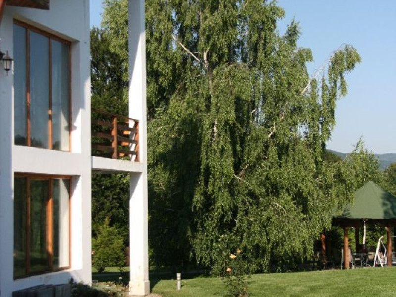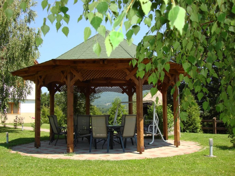Pensiunea se afla departe de circulatia, zgomotul si atmosfera urban specific statiunilor de munte, dar totodat aproape (la cca. 8 km) de bazele de tratament si bile srate de la Sovata.Curtea interioar a pensiunii este spatioas si ofer intimitate pentru tine si familia ta. Copiii se pot juca in sigurant in spatiul de joac amenajat pentru ei, in timp ce tu te relaxezi lang piscin sau pregtesti un grtar cu prietenii. In serile rcoroase de var te poti bucura de timpul petrecut in aer liber la cldura focului de tabr.