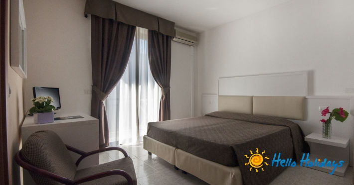 principala si dotate cu telefon, Tv, minibar, aer conditionat, incalzire, baie, uscator de par, safe. De asemenea, hotelul dispune de 32 de apartamente dotate cu kitchenette, balcon, telefon, Tv, aer conditionat. Atentie! Infantul 0-1.99 doarme in pat cu parintii, baby-cot, la cerere, se plateste local: 8 euro / zi. Facilitati hotel: restaurant, bar, terasa in aer liber, piscina atat pentru adulti cat si pentru copii, jacuzzi, sala de conferinta. Informatii aditionale: internet WIFI in lobby gratuit, check/in ora 17:00, check/out ora 10:00, taxa locala este obligatorie si se achita la sfarsitul sejurului, mini barul se poate aproviziona, la cerere, contra cost. Website: www.rinahotelalghero.it