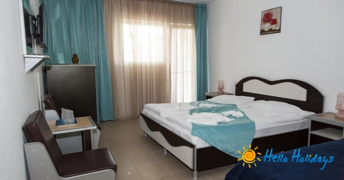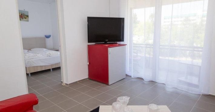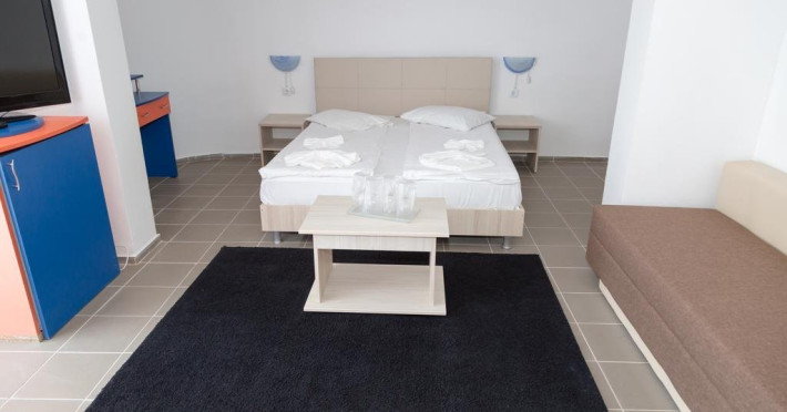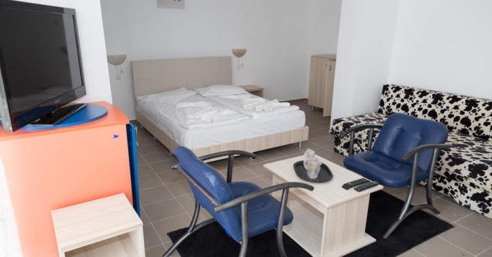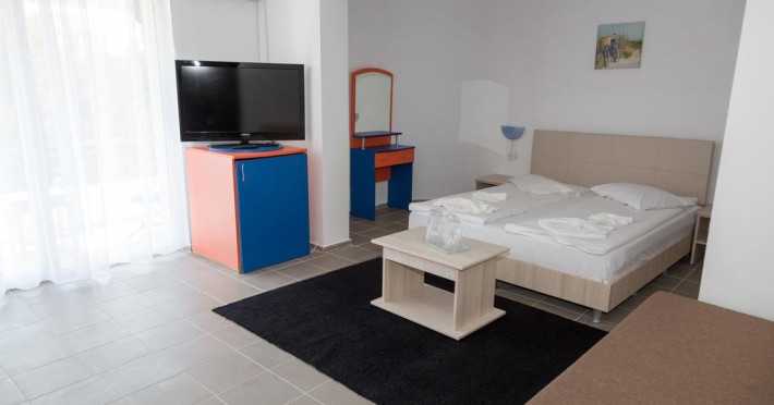 Garsonierele dispun de aer conditionat, TV, frigider, pat matrimonial, canapea extensibila, 1 masuta, 2 fotolii, baie, balcon cu masuta si scaune.