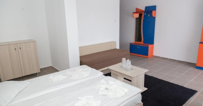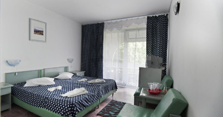 Camerele duble standard din corp B(parter+etajul1) au pat matrimonial, TV, frigider, baie proprie, balcon si aer conditionat. Capacitate maxima de cazare 2 adulti si 1 copil 0-11.99 ani.