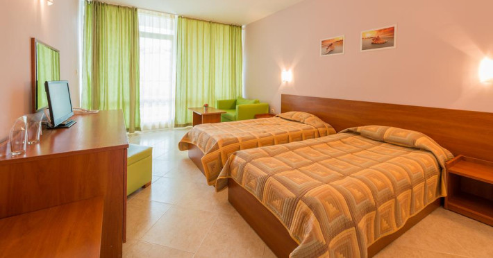 Camerele sunt dotate cu baie cu cada, TV satelit, balcon, minibar, telefon, uscator pentru par, Wi-Fi,aer conditionat, pardoseala-mocheta.