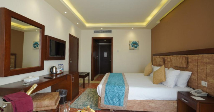 The hotel Ivy Cyrene Sharm Resort Adults Friendly Plus 13**** is located approximately 500 m from the private beach. The nearest bars and restaurants can be found at a distance of around 100 m. There is a shuttle between the hotel and the airport (foThe hotel Ivy Cyrene Sharm Resort Adults Friendly Plus 13**** is located approximately 500 m from the private beach. The nearest bars and restaurants can be found at a distance of around 100 m. There is a shuttle between the hotel and the airport (for a fee). On the beach are sun loungers, cushions and beach towels available. Cold drinks are served at the beach bar. To reach the beach a shuttle is provided. The air-conditioned, GPS-verified halal hotel is equipped with a 24h reception (check-in is possible around the clock), a lobby bar, Wi-Fi, internet access, a supermarket and other shops, a boutique, cash machine, a hairdresser, a jacuzzi, a first aid kit as well as parking spaces (limited). In the outdoor area you will find a garden as well as a seasonally heated pool (open all year), where pool towels are available for free. There is also a separate and an integrated childrens pool. Furthermore, outside you can find a terrace. For your entertainment, the hotel offers a theatre. For the young hotel guests there is a playground. For very young guests, kids chairs can also be provided. You can store your luggage in the hotels storage room. There is also a laundry service available at an additional cost to customers. Ironing equipment can be rented at the hotel for a fee. For your comfort, in addition to the concierge service the hotel page will ensure you are looked after. If necessary, you can contact the medical centre at any time (for a fee). The energy supply is 220 Volts. For conventions and other business meetings, the hotel offers EXTRA_FEE (auditorium-style) conference rooms with a video projector, printer, scanner as well as overhead projector. If you want to explore the holiday region, you can use the car rental service close to the hotel (extra fee). For guests on their honeymoon, the hotel has special offers such as special honeymoon packages, romantic dishes in the restaurant, a present, a basket of fruit or flowers in the room. Euro/Master Card and Visa are accepted as means of payment. Catering As catering services the hotel offers all-inclusive and breakfast only. Breakfast is offered American, continental or from the buffet. For the meals, there are a restaurant and several bars as well as the pool bar. Distances Airport: approximately at 8 km Distance to the sea: approximately at 500 m Nearest bank: approximately at 5 km Sports amp; Leisure To keep your fitness up on holiday, there is a gym for guests to use. In the surrounding you can also take advantage of a range of water sports, including banana and speedboat riding and water aerobics. There is also the option to play billiards. With darts and volleyball various other sports offer a lot of variety on holiday. For cyclists there is a storage room. Furthermore, various water sports such as kayaking, windsurfing and diving are offered in the area. Beginners as well as advanced divers can improve their skills under water with an instructor at a diving school. A sauna (extra fee) awaits you for relaxation. The hotel also offers massages (extra fee) and beauty treatments (extra fee). Infants can be looked after in the hotels own baby club. For older children the care takes place in the childrens club. There is a babysitting service in the hotel (extra fee) . Junior hotel guests can also let off steam in the mini disco. In terms of adult entertainment, evening shows and live music are presented. Additional information The 3-storey hotel has a total of 230 rooms. The hotel staff speak English, Italian, Russian and Arabic.Datorita dinamicitatii domeniului disponibilitatea ofertelor se modifica de la un moment la altul. De aceea ofertele sunt valabile in limita locurilor disponibile. Agentia nu este responsabila pentru eventualele neconcordante care pot aparea intre informatiile privind tarifele si alte detalii din site si informatiile primite in agentie. In aceste cazuri vor avea prioritate, intotdeauna, informatiile primite in agentie.