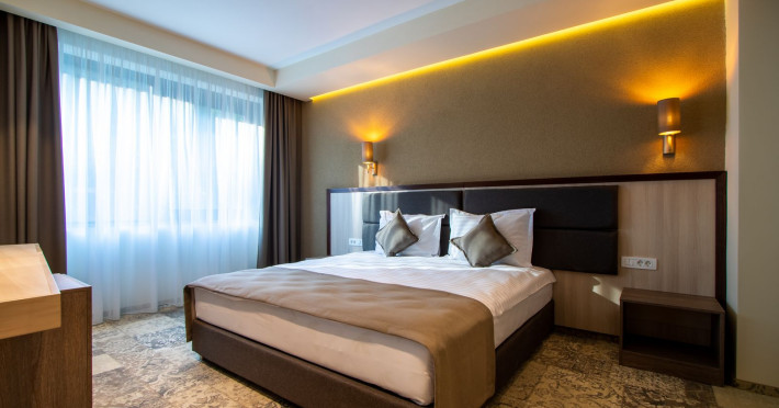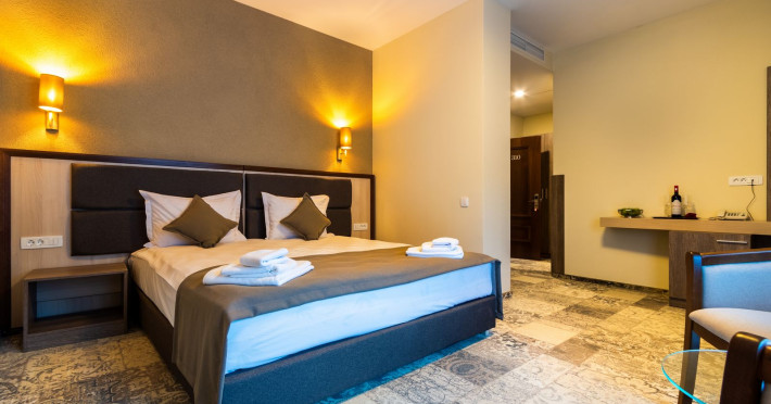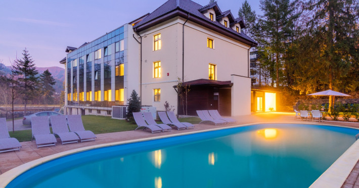 Hotel Izvoare este situat in Calimanesti, la 18 kilometri de Ramnicu Valcea. Facilitati hotel: sala de conferinte, restaurant, bar, centru SPA (sauna, masaj), piscina exterioara, sala de fitness, loc de joaca pentru copii, WI-FI gratuit, parcare gratuita. Facilitati camere: acces pe baza de cartela magnetica, instalatie de climatizare cu control digital, TV, seif, telefon, minibar, baie proprie cu dus/cada, uscator de par, halate si papuci, unele camere au balcon/terasa. Camerele standard (16-18 mp) au un design modern, elegant si rafinat, au vedere laterala si sunt dotate cu 2 paturi twin ce se pot apropia oferind confort sporit, fiind alegerea perfecta pentru calatorii de afaceri. Pot fi ocupate in regim single sau duble, maxim 2 persoane in camera. Facilitatile camerei : sistem de inchidere pe baza de cartela; instalatie de climatizare cu control digital; 2 paturi 90*200/ 1pat 180*200;seif cu inchidere electronica; telefon , minibar; SMART TV; baie cu dus walk-in (4mp); uscator de par si oglinda pentru cosmetica; halate si papuci Camerele Deluxe ( 19-22 mp)au vedere laterala si sunt dotate cu 2 paturi twin ce se pot apropia oferind confort sporit, Pot fi ocupate in regim single sau duble, Aceste camere pot acomoda maxim 2 adulti si 1 copil sub 6 ani care doarme in pat cu parintii Facilitatile camerei: sistem de inchidere pe baza de cartela, instalatie de climatizare cu control digital, 2 paturi 90*200/ 1pat 180*200, seif cu inchidere electronica, telefon , minibar, SMART TV, baie cu dus walk-in (4-5mp), uscator de par si oglinda pentru cosmetica, halate si papuci Camerele Superior (16-18mp) Balconul camerei asigura un confort sporit si o zona de relaxare. Camerele sunt dotate cu 2 paturi twin. Pot fi ocupate in regim single sau duble, maxim 2 persoane. Nu exista optiunea pentru pat suplimentar in camera. Facilitatile camerei: sistem de inchidere pe baza de cartela, instalatie de climatizare cu control digital, 2 paturi 90*200/ 1pat 180*200, seif cu inchidere electronica, balcon, telefon , minibar, SMART TV, baie cu dus walk-in (4mp), uscator de par si oglinda pentru cosmetica, halate si papuci. Camerele King Deluxe cu o suprafata de 20-24mp , aflate la ultimul etaj, ofera o atmosfera de basm fiind prevazute cu o terasa spatioasa, dotata cu canapea, fotolii si masuta. Sunt dotate cu :sistem de inchidere pe baza de cartela; instalatie de climatizare cu control digital;pat matrimonial 180*200cm ; seif cu inchidere electronica; telefon ; Minibar; SMART TV; baie cu cada; uscator de par si oglinda pentru cosmetica; halate si papuci. Camerele executive (cu o suprafata de 30-33mp ) ofera o zona de relaxare si terasa. Dotate cu o canapea extensibila 140*200 cm si un pat matrimonial 180*200 cm , dressing-ul, camerele de baie ultra-spatioase prevazuta cu cada, sunt doar cateva elemente care definesc rafinamentul acestor camere. Aceste camere sunt destinate pentru maxim 3 adulti sau 2 adulti si 2 copii sub 14 ani. Junior suite cu o suprafata de 40-42 mp, apartamentele dispun de o camera dotata cu pat matrimonial 180*200 cm si un living prevazut cu o canapea extensibila 140 *200 cm , fiecare dintre acestea fiind dotate cu Smart TV. Apartamentele sunt destinate pentru maxim 3 adulti sau 2 adulti si 2 copii cu varsta mai mica de 14 ani. Apartamentele President Suite, cu o suprafata de 33 mp, pe langa dormitorul cu pat matrimonial 180*200 cm , au un living primitor dotat cu o canapea extensibila 140*200 cm si un balcon prevazut cu mobilier elegant.Aceste camere sunt destinate pentru maxim 3 adulti sau 2 adulti si 2 copii sub 14 ani. Romantic Suite (29mp) dispune de :dormitor dotat cu pat matrimonial 180*200cm ; iving dotat cu canapea extensibila 140*200 cm; seif cu inchidere electronica; telefon , minibar; 2 SMART TV ;baie cu cada (5mp); uscator de par si oglinda pentru cosmetica; halate si papuci, sampanie si fructe la check innDatorita dinamicitatii domeniului disponibilitatea ofertelor se modifica de la un moment la altul. De aceea ofertele sunt valabile in limita locurilor disponibile. Agentia nu este responsabila pentru eventualele neconcordante care pot aparea intre informatiile privind tarifele si alte detalii din site si informatiile primite in agentie. In aceste cazuri vor avea prioritate, intotdeauna, informatiile primite in agentie.
