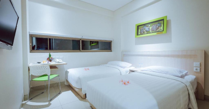 J Hotel Kuta enjoys a strategic location in Kuta, a 10-minute drive from Kuta Beach. Featuring modern rooms with air conditioning, the hotel provides free WiFi throughout the building and free on-site parking.