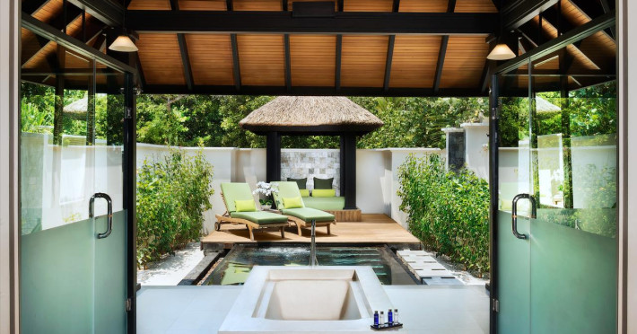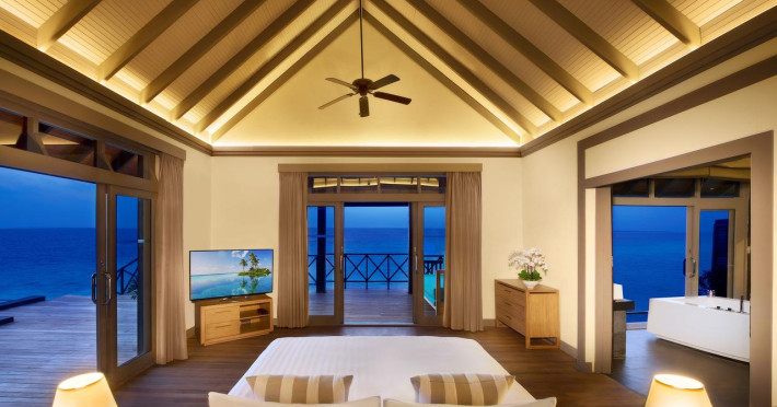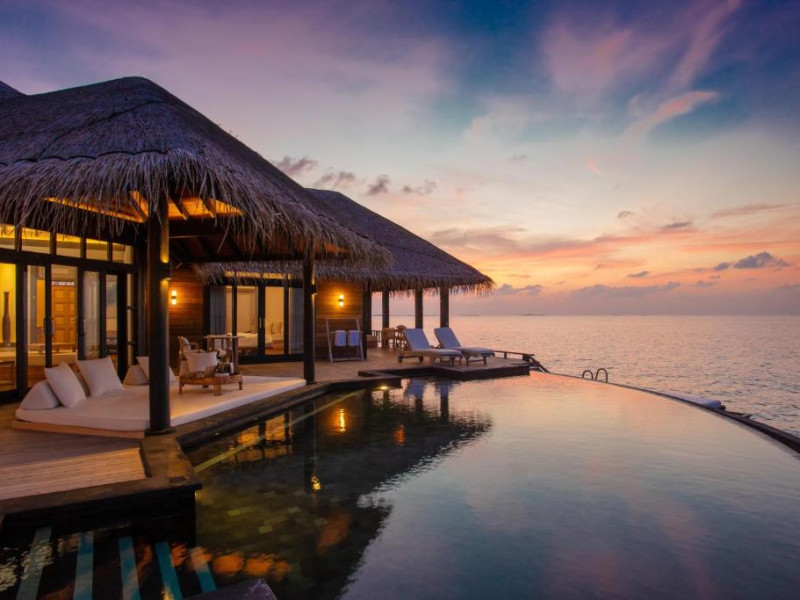 Toate unitățile de cazare spațioase au aer condiționat, TV cu ecran plat, aparat de cafea Nespresso, WiFi gratuit și piscină privată. Pune la dispoziție o gamă de vile situate pe plajă sau deasupra apei, cu vedere la răsărit sau la apus, piscină privată si baie privată. Unele includ cadă spa relaxantă, iar altele au dus cu efect de ploaie in aer liber. Pentru o vacanță cu adevărat specială există 3 resedinte personalizate pentru familii sau prieteni care călătoresc impreună.
