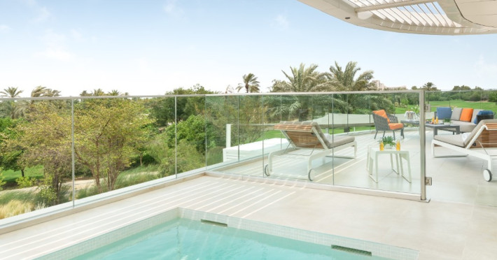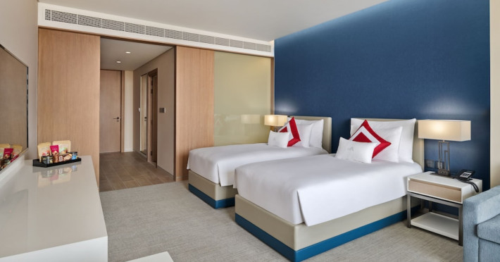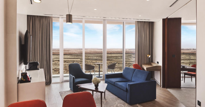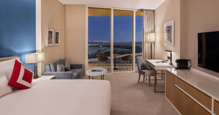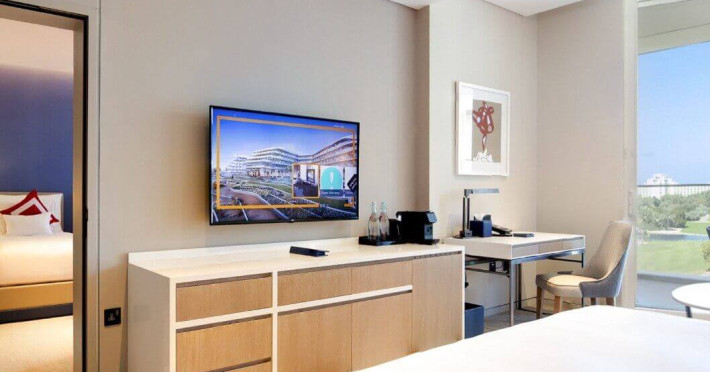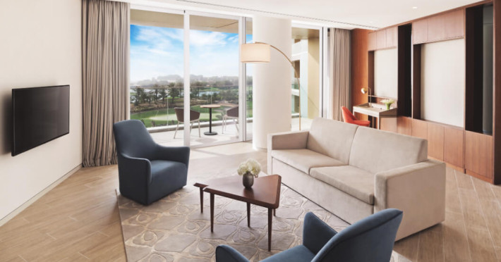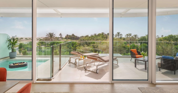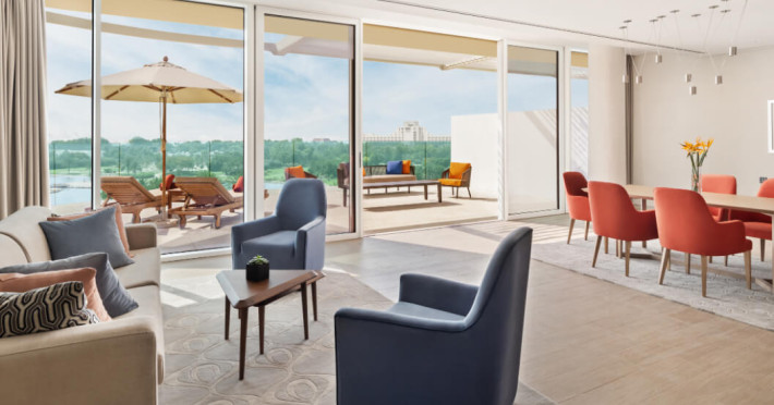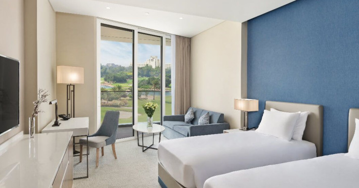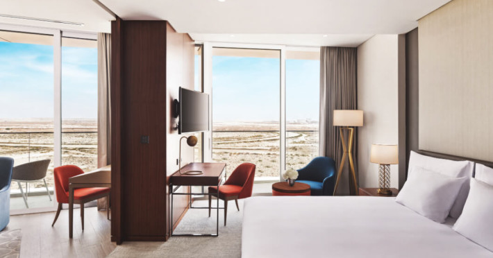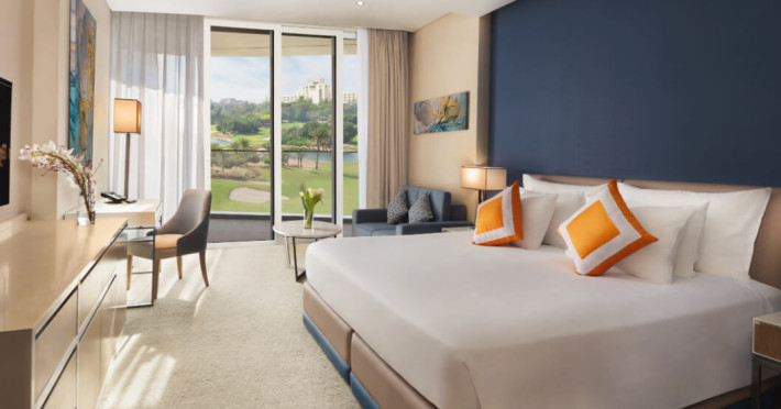 JA Lake View Hotel is a contemporary lifestyle destination located across from Palm Jebel Ali, Dubai. Set against the backdrop of lush greenery and views of the championship golf course, the hotel is a modern, design-led property offering an elevated experience close to the resort’s 800-meter private beach.The hotel features 348 spacious rooms and suites, with private balconies or large terraces overlooking the golf course and resort grounds. With a bold architectural style and art-inspired interiors, the ambiance is vibrant yet relaxed—ideal for couples, families, and business travellers alike.Guests enjoy access to eight outdoor temperature-controlled pools across the wider resort, including a Signature saltwater pool for premium suites and an adults-only pool. JA Lake View Hotel is adjacent to a championship-standard 9-hole golf course and features its own Golf Academy and floodlit driving range. For wellness and recreation, the resort offers Calm Spa & Salon, a modern gym, four floodlit tennis courts, padel tennis, squash and badminton courts, and a wide variety of motorized and non-motorized water sports.Unique to the property is the JA Shooting Club, offering indoor ranges for pistol shooting, alongside archery. Horseback riding experiences and riding lessons are also available through JA Equestrian Centre.With 25 restaurants and bars across the resort, culinary options range from casual beachfront dining to award-winning fine dining. Highlights include Kinara by Michelin-starred chef Vikas Khanna, the modern European RePUBlik gastropub, perfect for hearty business lunches, and Bibé Rooftop Lounge, a vibrant venue for sunset cocktails, premium hubbly bubbly, and late-night socialising with panoramic views.Children are warmly welcomed with a certified kids club, splash pools, and babysitting services available.JA Lake View Hotel offers flexible indoor and outdoor meeting and event venues, ideal for corporate retreats, social celebrations, and incentive groups. The hotel is part of the Global Hotel Alliance and maintains a 5-star rating under local tourism classification.348 stylish, tech savvy rooms and suites with glass balconies | Immersed in greenery and steps away from 9-hole, par 35, championship standard golf course with floodlit driving range, par 3 course, putting and pitching greens | 800 meters of white sandy private beach | 8 outdoor temperature-controlled swimming pools | Calm Spa & Salon offering over 40 rejuvenating treatments and services | Private 104-berth full-service marina | JA Shooting Club offering pistol and clay shooting as well as archery | A culinary journey of 25 restaurants & bars | Kids Club | Over 40 incredible activities to thrill all generations | Gym, Squash, Tennis, Padel Tennis and Badminton courts | 10 meeting rooms & a ballroom