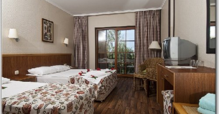 Hotelul a fost renovat in 2013 si este format dintr-o cladire principala de 6 etaje si bungalow-uri a cate 2 etaje si dispune de 595 de camere repartizate astfel: camere standard in caldirea principala (suprafata 26 mp); camere standard in bungalow-uri (suprafata 21 mp) camere family in cladirea principala (suprafata 38 mp) formate din 2 dormitoare interconectate camere family in bungalow-uri (suprafata 30 mp) formate din 2 dormitoare interconectate Localizare: pe plaja, la 45 km de centrul orasului Antalya si la 35 km de aeroport. Dotari camera: telefon, TV satelit, minibar, seif, aer conditionat, acces internet, baie cu cada, uscator de par, balcon . Facilitati hotel: restaurant principal, bufet pentru copii in restaurantul principal, 4 restaurante a la carte (italian, fructe de mare, turcesc, chinezesc), 7 baruri, restaurant snack, patiserie, piscina interioara (cu incalzire), 4 piscine exterioare cu tobogane, piscina pentru relaxare, piscina pentru copii, miniclub (copii 4-12 ani), club pentru adolescenti ( peste 13 ani), terenuri de tenis, minifotbal, minizoo, loc de joaca pentru copii, aerobic, stretching, gimnastica in piscina, tenis de masa, centru fitness, animatie, centru SPA, baie turceasca, sauna, centru conferinte. Servicii cu plata: telefon si fax, room service, sporturi acvatice motorizate, internet, lectii de surfing, baby sitting, spa si centru de infrumusetare, biliard, sala de jocuri, jocuri video, tenis cu nocturna, spalatorie, doctor, coafor, inchiriere masini, carucioare pentru copii. Plaja de nisip, cu o lungime de 270 m. Sezlongurile, umbrelele si prosoapele de plaja sunt gratuite. Alte informatii: - sucul natural de fructe este inclus; - minibarul este alimentat cu bauturi racoritoare si apa; - carduri acceptate: Visa, Mastercard; - limbi straine vorbite de catre personalul hotelului: engleza, germana, rusa. Hotelul isi rezerva dreptul de a modifica conceptul in timpul sezonului fara a anunta in prealabil aceste modificari.Datorita dinamicitatii domeniului disponibilitatea ofertelor se modifica de la un moment la altul. De aceea ofertele sunt valabile in limita locurilor disponibile. Agentia nu este responsabila pentru eventualele neconcordante care pot aparea intre informatiile privind tarifele si alte detalii din site si informatiile primite in agentie. In aceste cazuri vor avea prioritate, intotdeauna, informatiile primite in agentie.