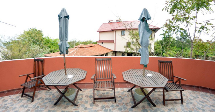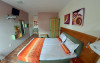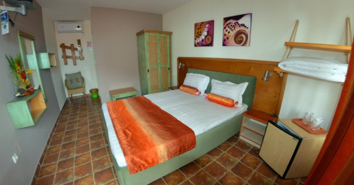 Junior suite open space acomodeaza 4-5 persoane, dispunand de vedere la mare, terasa / balcon privat, baie proprie, TV-cablu, minifrigider, cada baie pe colt, pat matrimonial, o canapea extensibila, loc de dormit mansardat, aer conditionat etc. Apartamentul de 2 camere (dormitor+living+baie) detine pat matrimonial+canapea extensibila, sifoniere spatioase, dressing, televizoare LCD, minifrigidere, aer conditionat, baie cu cada pe colt si uscator de par. Apartamentul este echipat cu mobilier modern (constructie 2012). Apartamentul familial, perfect pentru vacantele in familie, este format dintr-un dormitor mare si loc de dormit mansardat spatios (scara interioara din lemn), echipat cu mobilier modern (constructie 2012). Apartamentul are vedere catre mare, 2 canapele extensibile mari + pat suplimentar, televizor LCD, minifrigider, baie proprie cu cabina de dus, uscator si aer conditionat.