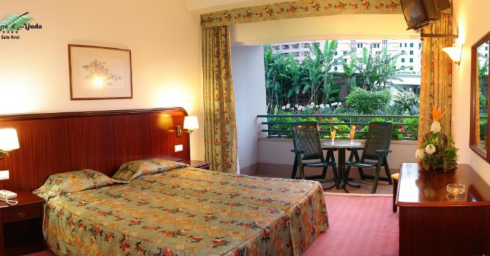 Toate camerele Hotelului Jardins Da Ajuda au balcon privat cu vedere la munții și la marea din apropiere. Oaspeții pot utiliza un telefon și o cutie de valori individuală, la un cost suplimentar.