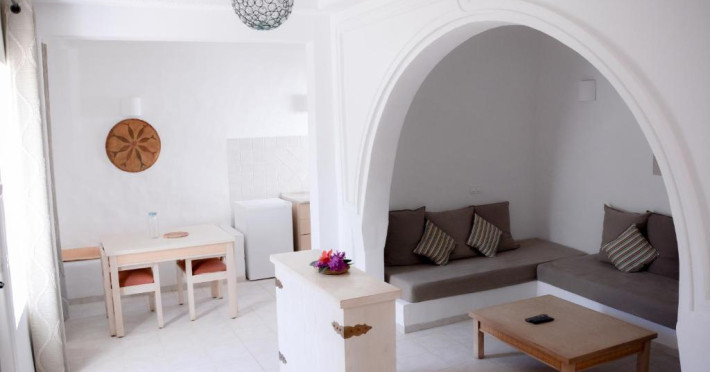 Această proprietate este la 3 minute pe jos față de plajă. An outdoor swimming pool, a sun terrace with deckchairs and a restaurant are available in this residence, which is located a 20-minute drive from Djerba International Airport. Transfer service and car rental are available on site.