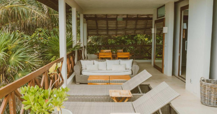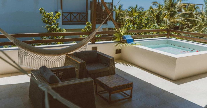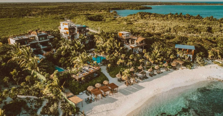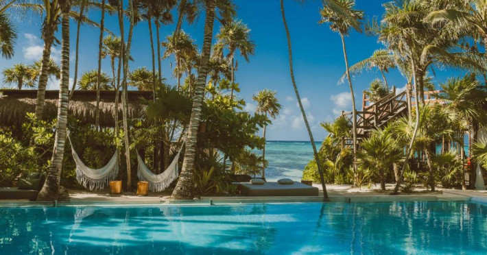 Located on a white-sand beach just 10 km from Tulum, Jashita Hotel offers 3 outdoor pools, a bar-restaurant, suites with private plunge pools and a luxurious Penthouse with a sea-view terrace.