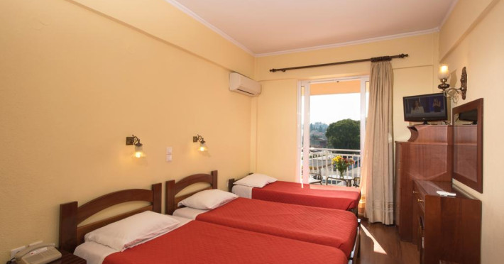 Sunset Hotel este situat în marginea orașului Corfu, la doar 600 de metri de plaja Alykes. Hotelul se afla la 800 de metri de restaurante și baruri pentru toate gusturile. O parcare spațioasă este la dispoziția oaspeților. Proprietatea se află la 2,5 km de port și la 5 km de aeroport.
