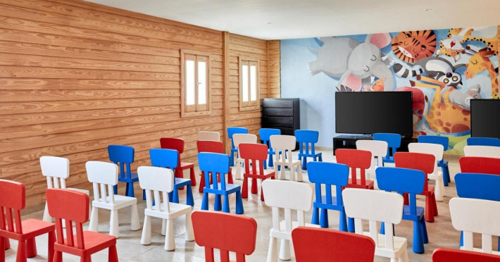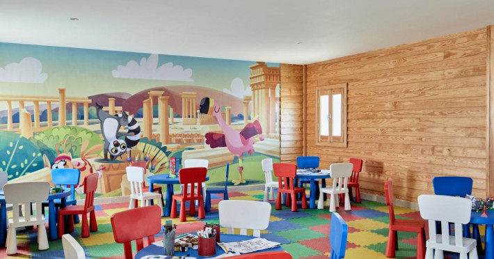 Copiii se pot distra la piscina special amenajată pentru ei.