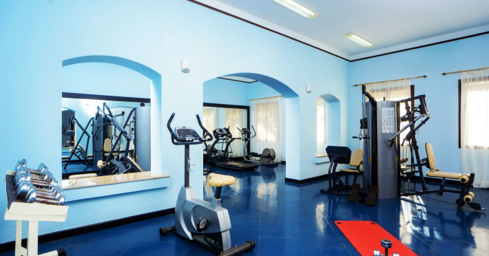 O sală de fitness cu echipamente necesare pentru o gamă variată de exerciții fizice este la dispoziția celor interesați.