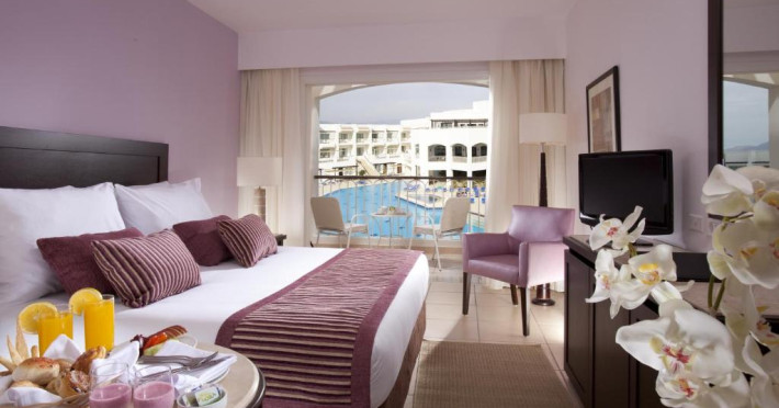 Jaz Sharks Bay este un hotel all-inclusive de 4 stele, situat intr-una dintre cele mai renumite destinații din lume, Sharm El Sheikh. Hotelul reprezintă o destinație ideală pentru călătorii practici, care caută un refugiu confortabil. Toate camerele de la această cazare relaxantă au terasă sau balcon răcorite de briză, cu vedere fermecătoare la piscină și la grădină. Cele două piscine ale hotelului sunt concepute ideal pentru a găzdui oaspeții care doresc să se bucure fie de un bronz relaxat, fie de o baie răcoritoare.