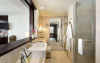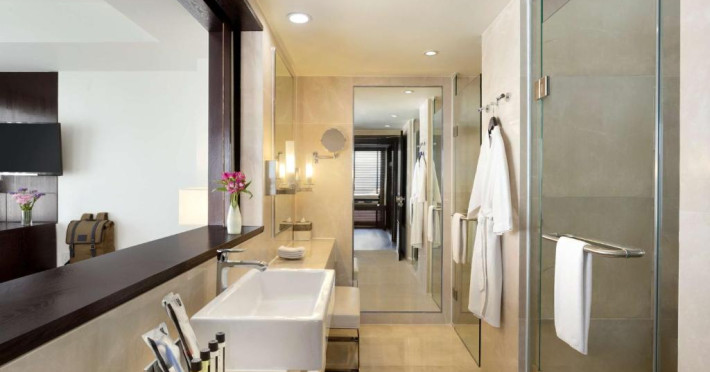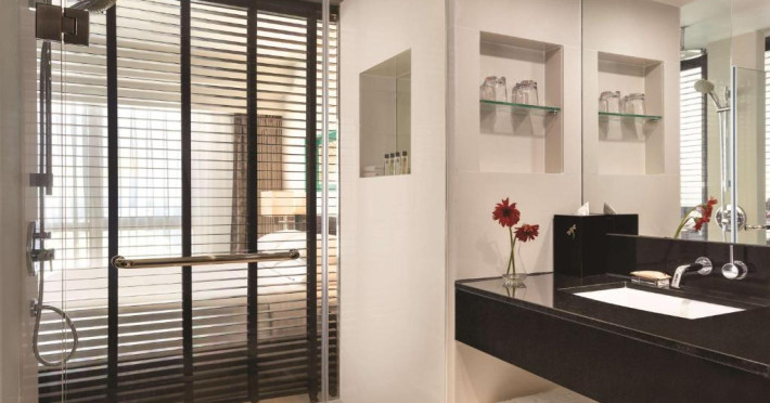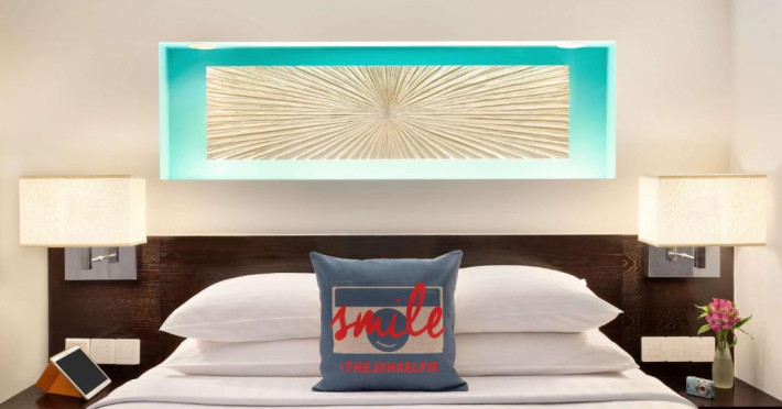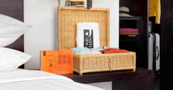 Camerele cu aer condiționat de la JEN Maldives Malé by Shangri-La au TV cu ecran plat cu canale chinezești și facilități pentru prepararea de ceai/cafea. De asemenea, camerele au mobilier din lemn de culoare inchisă, bovindouri mari cu vedere panoramică la orizontul orașului și vedere parțială la Oceanul Indian. Băile sunt prevăzute cu duș cu efect de ploaie și funcție de hidromasaj, periuță de dinți și papuci. WiFi este gratuit in camere.
