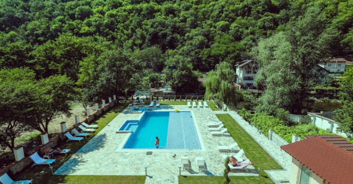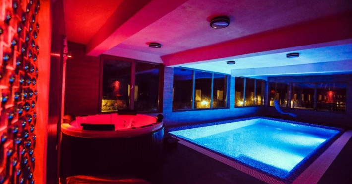 Facilitati generale pensiune: camere cu pat matrimonial, restaurant a la carte, bar si terasa, piscina interioara, piscina exterioara in sezon, 3 tipuri de sauna (2 uscate cu temperaturi diferite si 1 umeda), gradina cu foisor, gazon.
