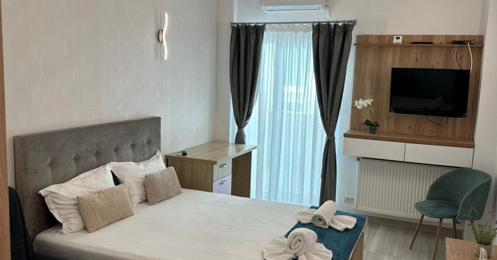 Jolie Studiosamp; Apartments- cochete, elegante, cu suprafete si terase generoase, toate fiind situate la etaje superioare.Studiourile si apartamentele sunt situate intr-un nou complex, la 3-4 minute de plaja.Datorita dinamicitatii domeniului disponibilitatea ofertelor se modifica de la un moment la altul. De aceea ofertele sunt valabile in limita locurilor disponibile. Agentia nu este responsabila pentru eventualele neconcordante care pot aparea intre informatiile privind tarifele si alte detalii din site si informatiile primite in agentie. In aceste cazuri vor avea prioritate, intotdeauna, informatiile primite in agentie.