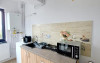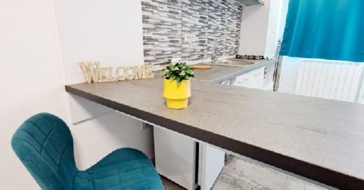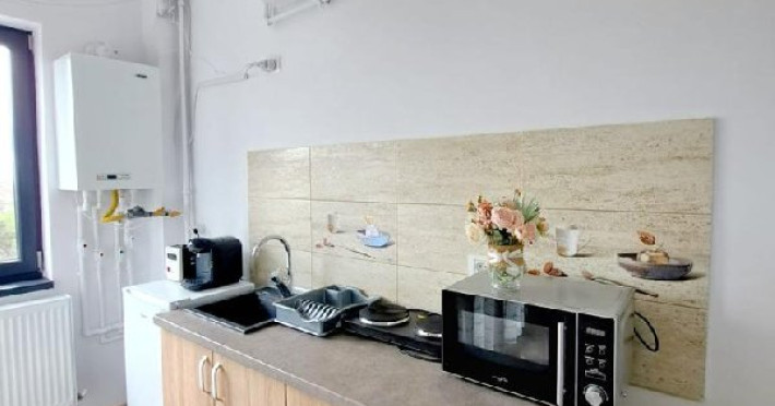 Bucataria spatioasa, aranjata foarte practic, are urmatoarele dotari: plita inductie, hota, ghiuveta si scurgator, frigider cu congelator, cuptor microunde si centrala pe gaz pentru furnizarea apei calde. Alte dotari: expressor cafea, prajitor de pAeine, fierbator apa si toate ustensile de bucatarie necesare.