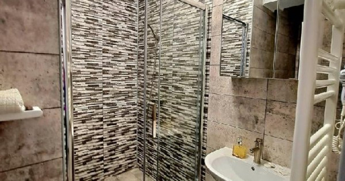 Baia este dotata cu uscator de par, lavoar incastrat in mobilier baie, ventilator aerisire, oglinda.