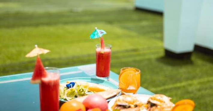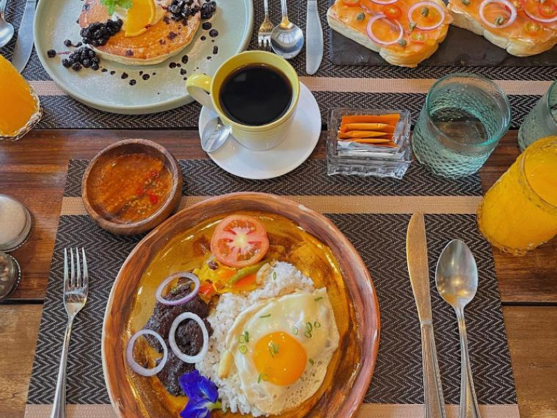 Oaspeții se pot bucura de o selecție de mic dejun american, asiatic și englezesc la restaurantul din incintă, The Pig Out Bistro. Pentru oaspeții care aleg să-și ia micul dejun in cameră, se poate aranja mesele in cameră.