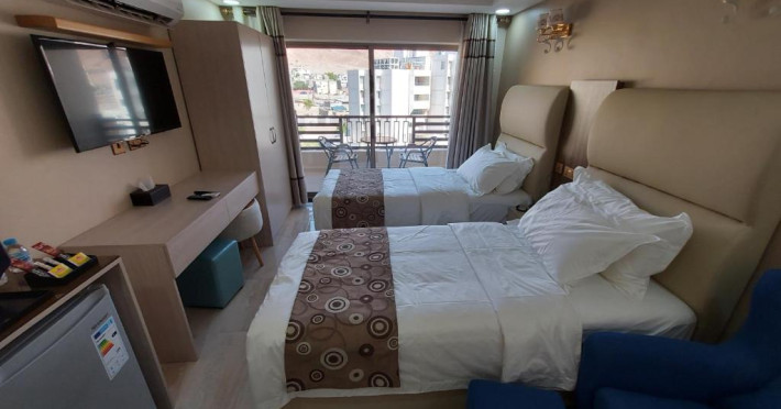 Set in Aqaba, less than 1 km from Al-Ghandour Beach, Jordan Seasons Hotel offers accommodation with a restaurant, free private parking, a shared lounge and a terrace. The property is situated 1.1 km from Royal Yacht Club, 13 km from Tala Bay Aqaba and less than 1 km from Aqaba Fort. The accommodation features a 24-hour front desk, airport transfers, room service and free WiFi.