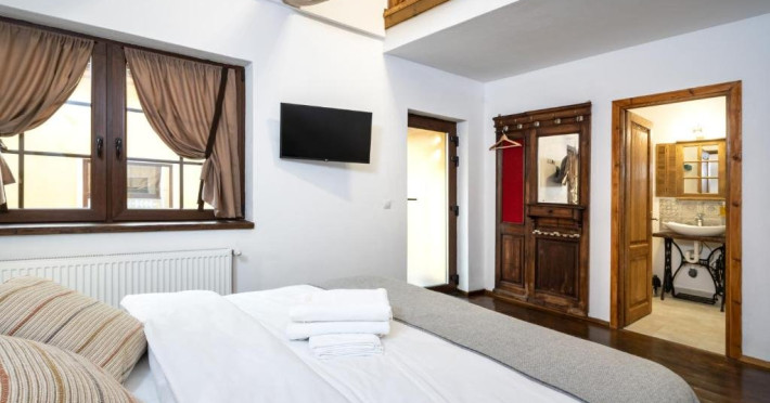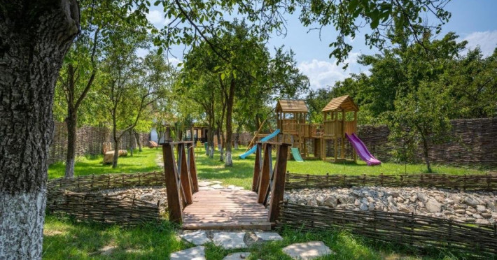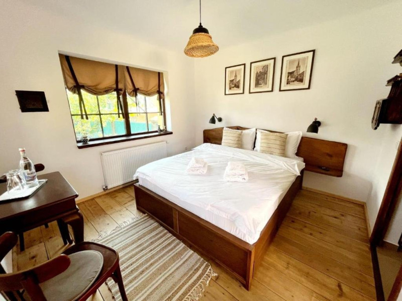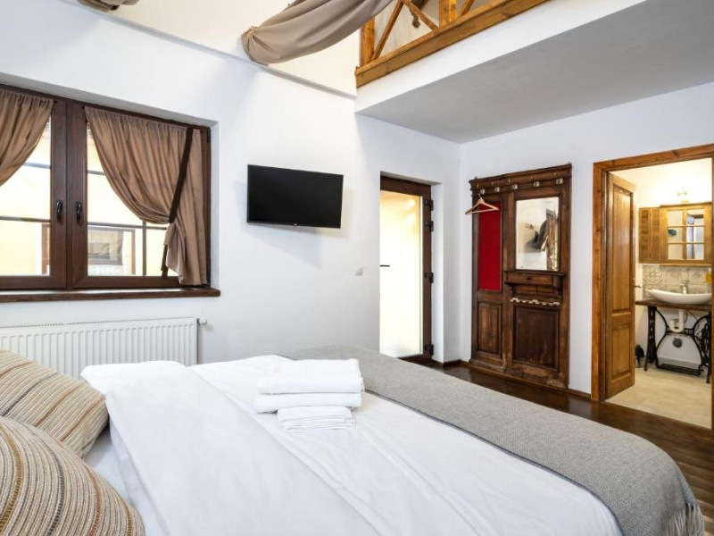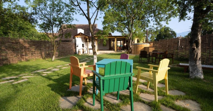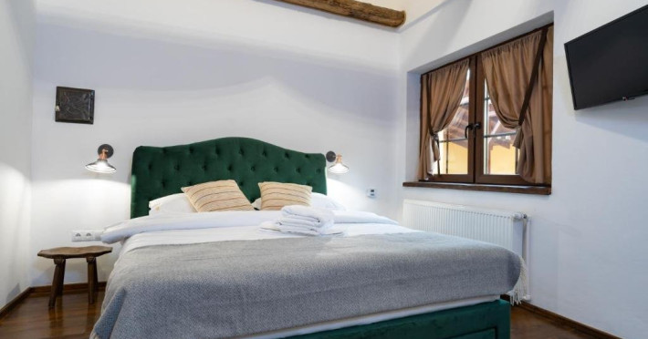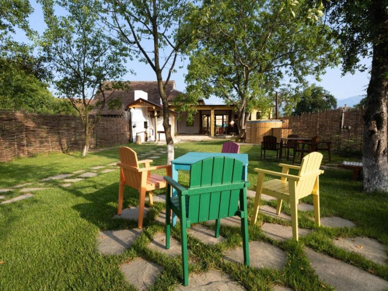 Pentru a facilita oaspetilor nostri o experienta de poveste am investit aici pasiunea noastra pentru armonie.Armonie intre vechi si nou, traditional si modern, natura si om, copii si adulti, feminin si masculin s-au impletit intr-un loc care invita la relaxare.Porumbacu de Sus, satul cu staif de la poalele muntilor Fagaras ne-a imbratisat din prima clipa, asa ca am ramas si am transformat o gospodarie care se desfasoara pe 2000 mp intr-un taram al bucuriei . Am pastrat autenticitatea locului imbinand elemente traditionale cu facilitati moderne. Patru camere cochete cu bai individuale realizate cu dichis, o bucatarie utilata cu electrocasnice premium, un spatiu de zi si de noapte de 60 mp cu 2 pereti de sticla.Si o gradina cat vezi cu ochii care gazduieste un cuptor de lut, un ciubar cu apa filtrata, sistem jacuzzi si lumini , sezlonguri, mese, pomi fructiferi si flori, un loc de joaca solid, un iaz cu pesti si nuferi, un mini-amfiteatru unde se sta in jurul focului la ceas de seara, o casuta ca-n povesti prin acoperisul careia isi face loc spre cer un mar de 90 de ani se numara printre atractiile locatiei.Datorita dinamicitatii domeniului disponibilitatea ofertelor se modifica de la un moment la altul. De aceea ofertele sunt valabile in limita locurilor disponibile. Agentia nu este responsabila pentru eventualele neconcordante care pot aparea intre informatiile privind tarifele si alte detalii din site si informatiile primite in agentie. In aceste cazuri vor avea prioritate, intotdeauna, informatiile primite in agentie.