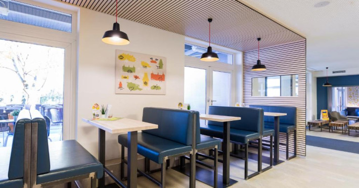 Copiii au la dispozitie zone de joacă interioare și in aer liber, precum și diverse jocuri de cărți, jocuri de societate și fotbal de masă.