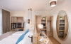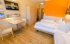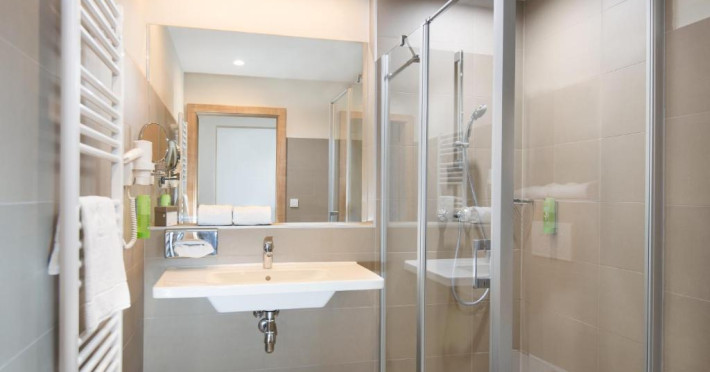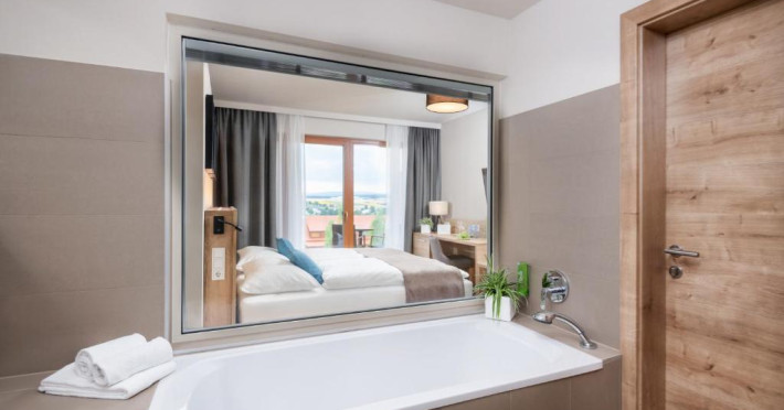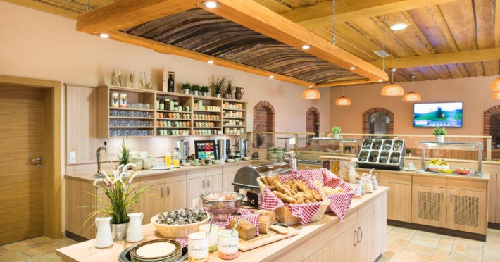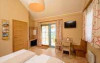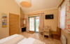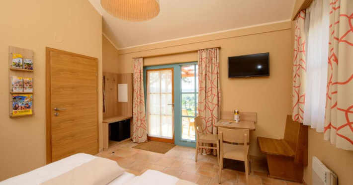 Some rooms are located in the main building and offer a 3 star ambiance, other rooms are in the newly built area and are on a 4 star level, some with bathtub or infrared cabin. All rooms have a seating area and a TV with satellite channels. There is also a playground and a playroom for kids and a petting zoo.