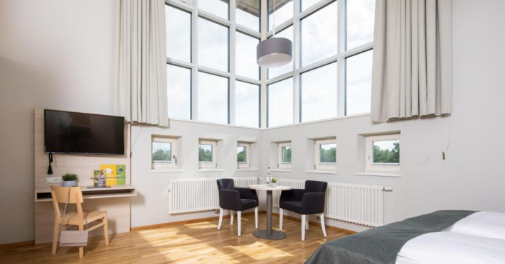 The spacious rooms at the JUFA Kempten are decorated in modern style with wooden furniture. All rooms include cable TV, a desk and a private bathroom.