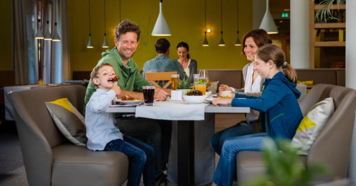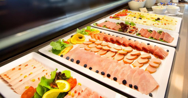 A full breakfast buffet is provided each morning in the JUFA Familienresort Kempten im Allgäu's spacious dining hall.