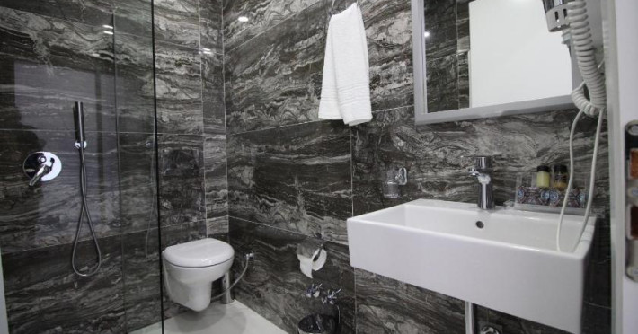 Cele 16 camere au aer conditionat, internet Wi-Fi, Tv, baie cu dus si uscator de par, balcon.Unele camere au vedere la mare.