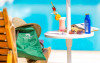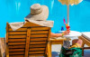 Pe plajă există șezlonguri și umbrele de plajă contra cost.