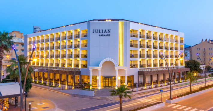 Julian Marmaris este o proprietate care se află în Marmaris, la o distanță de 150 m de plaja Marmaris și oferă unități de cazare cu aer condiționat și terasă în aer liber. Facilitățile de la Julian Marmaris includ și sală de fitness. Proprietatea are recepție cu program non - stop, unde clienții sunt întâmpinați cu ospitalitate în orice moment al zilei. Se oferă acces gratuit la internet Wi-fi în spațiile publice. Parcarea este disponibilă la proprietate gratuit.