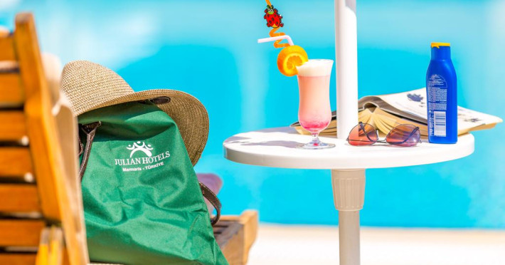 La Julian Marmaris oaspeții au la dispoziție un restaurant care servește mâncare în stil bufet. Preparate din bucătăria internațională așteaptă să fie degustate în fiecare zi la micul dejun, prânz și cină. Masa poate fi servită atât în interior, cît si în aer liber, pe terasă, în funcție de vreme. 2 baruri, dintre care unul la piscină, sunt disponibile cu o ofertă variată de băuturi răcoritoare și alcoolice.
