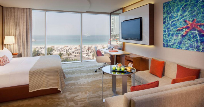 Jumeirah Beach Hotel is a beach resort that is completely given to the pleasures of life. A dynamically shaped 26 storey curved design built in the shape of a breaking wave; the building stands 93 metres high and 275 metres long. In order to make our guest experience even more memorable at Jumeirah Beach Hotel, we are pleased to inform you that we have embarked on a remodelling of our rooms.With its striking wave-like design, this five-star resort is one of Dubai’s most instantly recognisable structures. Happily for our guests, the Jumeirah Beach Hotel is equally famed for its amazing value and sheer wealth of options to enjoying your stay.All the hotel’s 617 rooms, suites and villas are luxuriously furnished and provide spectacular views of the Arabian Gulf. And once you’ve finished taking in the view, you can choose from the widest array of leisure facilities around, including a scuba diving centre, five swimming pools, Sinbad’s Kids Club, The Hub for teens and Wild Wadi Water Park.Jumeirah Beach Hotel is a beach resort that is completely given to the pleasures of life. A dynamically shaped 26 storey curved design built in the shape of a breaking wave; the building stands 93 metres high and 275 metres long. In order to make our guest experience even more memorable at Jumeirah Beach Hotel, we are pleased to inform you that we have embarked on a remodelling of our rooms.With its striking wave-like design, this five-star resort is one of Dubai’s most instantly recognisable structures. Happily for our guests, the Jumeirah Beach Hotel is equally famed for its amazing value and sheer wealth of options to enjoying your stay.All the hotel’s 617 rooms, suites and villas are luxuriously furnished and provide spectacular views of the Arabian Gulf. And once you’ve finished taking in the view, you can choose from the widest array of leisure facilities around, including a scuba diving centre, five swimming pools, Sinbad’s Kids Club, The Hub for teens and Wild Wadi Water Park.