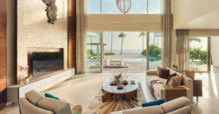 Fiecare vilă se află pe plajă sau deasupra apei și include zone de living cu TV cu ecran plat și o proprietate privată. Vilele spațioase și spațioase găzduiesc o gamă de spații pentru a lua masa, a săvută sau băutură, a vă odihni, de la zona de relaxare de pe acoperiș pană la terasele la soare, unde oaspeții pot admira vederea panoramică la Oceanul Indian. Băile private cu suprafață mare au cadă și cateva dușuri cu efect de ploaie, precum și un duș in aer liber.