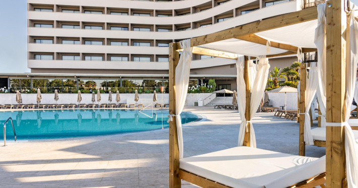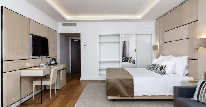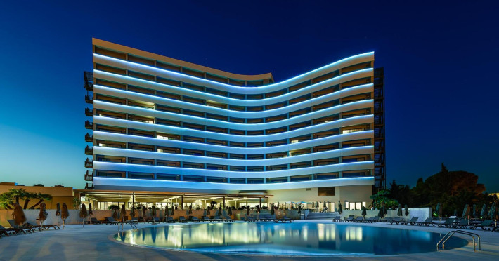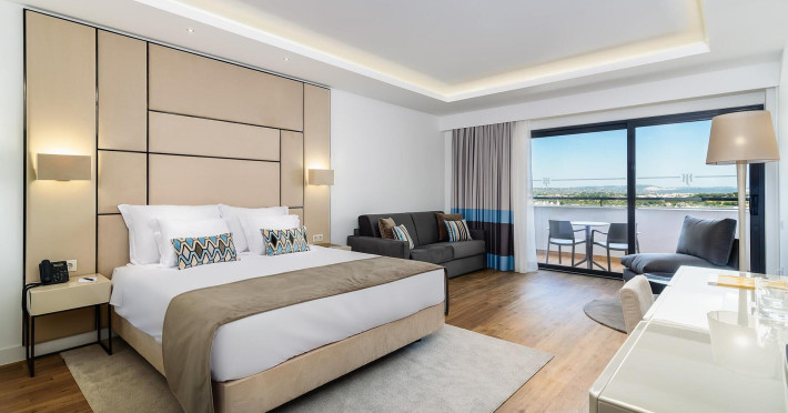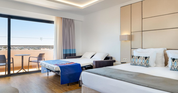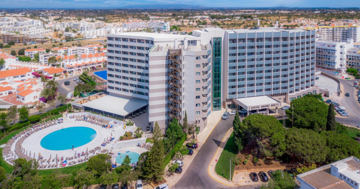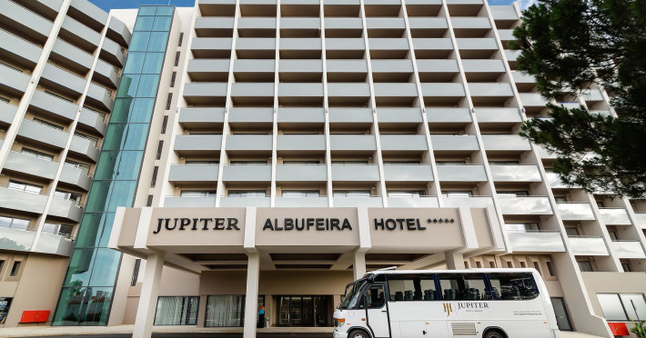 Thereis a shuttle between the hotel and the airport (for a fee). The beach at yourholiday destination is patrolled by a lifeguard. Here, there are sun umbrellasavailable. The air-conditioned hotel Jupiter Albufeira Hotel is equipped with areception, a lobby, Wi-Fi, internet access, a lift, a supermarket, a jacuzzi,parking spaces (limited) as well as a TV lounge with satellite TV. In theoutdoor area of the property, you will find a heated pool, where sun umbrellasand pool towels are available for free. There is also a water slide (type openslide). Furthermore, you can relax outdoors on a roof terrace. Inside the hotelyou can use a heated indoor pool. For your entertainment, the hotel offers alibrary/reading room. You can store your luggage in the hotel's storage room.There is also a laundry service. For your comfort there is a concierge service.For conventions and other business meetings, the hotel offers a conference areawith a reception, printer as well as a translation service. If you want to explorethe holiday region, you can use the car rental service close to the hotel. Forguests on their honeymoon, the hotel has special offers such as sparkling wine.Due to its barrier-free facilities , such as a hotel door that can be openedmanually, barrier-free entrances and wheelchair accessible rooms, the hotel isalso suitable for wheelchair users. Catering As catering services the hoteloffers all-inclusive. Dinner is served as a buffet. For the meals, there are abuffet restaurant and the cafeteria as well as the pool bar. The drinks menu ofthe hotel includes water, soft drinks and coffee and tea. Sports & LeisureIn addition to a tennis court there is also a tennis rental. A wellness showerawaits you for relaxation. The hotel also offers massages (extra fee). Infantscan be looked after in the hotel`s own baby club. Due to seasonal demand,weather conditions, and/or other force majeure events, certain facilities oritems may not be available at the same time. Additionally, some facilities oritems (e.g., parking, spa, etc.) may have additional costs, and prices maychange without prior notice. No refunds or compensation will be provided forunused services or meals.Located in Albufeira and with many leisure and fun areas, it is difficult to choose the highlight of the new Family Resort: Jupiter Albufeira Hotel - Family & Fun, the right choice for families who enjoy above all fun during their holidays.All rooms have a modern décor, a private balcony and a private bathroom with a walk-in shower. Each is prepared to accommodate families with young children.The main restaurant, Montechoro, serves non-stop dining from breakfast to dinner. Guests can enjoy pizza at the Al Italiu Italian restaurant or try the Alecrim's à la carte restaurant, which is included once a week on an all-inclusive basis.The rooftop Al Gharb Bar offers stunning views of Albufeira and the ocean, making it the perfect setting to end the day. The spa is available at an additional cost and includes a sauna, steam room and indoor pool. Guests have free access to the 24-hour fitness room