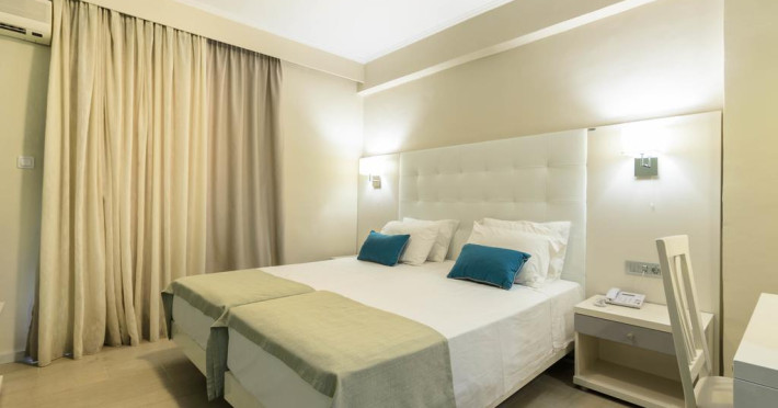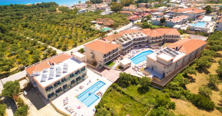 Karras Grande Resort is centrally located in Tsilivi tourist resort, a few steps to restaurants, bars, tourist shops, public transport and a variety of water sports. Zakynthos town and the port are 5 km away from the hotel. The hotel facilities and services include 24 h reception, lifts, Internet corner, TV/lounge area, WiFi Internet access in some public areas, restaurant, outdoor pool, children´s pool, sun terrace, pool bar and gardens. It also offers beauty treatments and massages services (with extra charge), day activity programme, billiards (with extra charge) and sports activities. The hotel has parking facilities. The rooms are equipped with A/C, telephone, TV, WiFi, mini fridge, safe (with extra charge), balcony/terrace, bathroom with bathtub/shower and hairdryer. ** Please note that some of the above facilities may be closed due to weather / seasonal conditions.** Address: 29100 Planos - Tsilivi, Zakynthos, Greece.Datorita dinamicitatii domeniului disponibilitatea ofertelor se modifica de la un moment la altul. De aceea ofertele sunt valabile in limita locurilor disponibile. Agentia nu este responsabila pentru eventualele neconcordante care pot aparea intre informatiile privind tarifele si alte detalii din site si informatiile primite in agentie. In aceste cazuri vor avea prioritate, intotdeauna, informatiile primite in agentie.