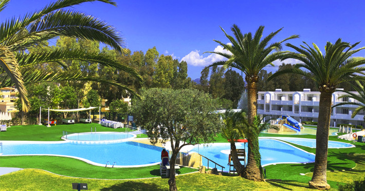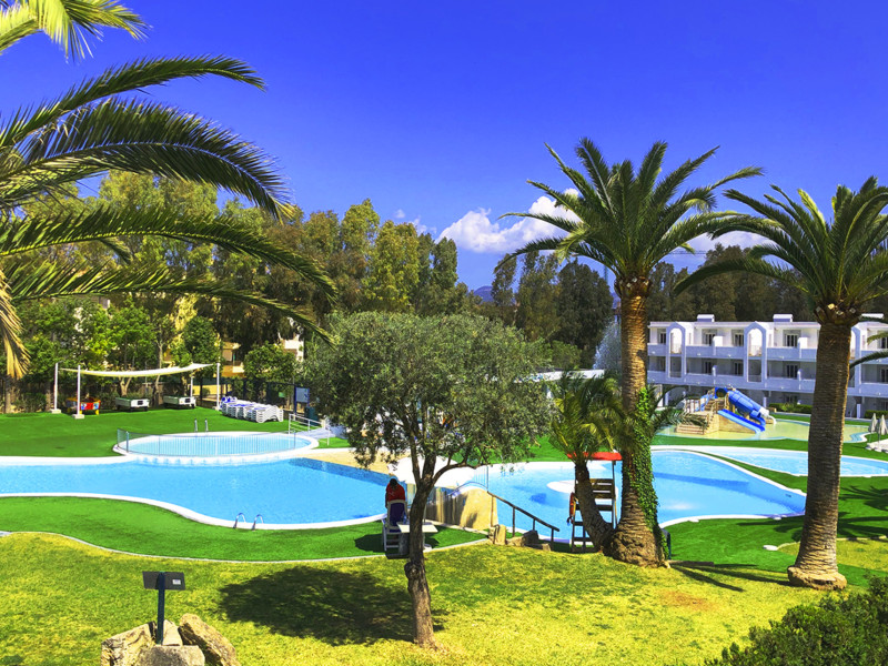 The apart hotel APARTMENTS JUTLANDIA FAMILY RESORT is located approx. 300 m from a sandy beach. The hotel is equipped with a 24h reception, a lobby bar, Wi-Fi, an internet corner, a supermarket, parking spaces as well as a TV lounge. In the outdoor area of the property you will find a garden as well as a seasonally open pool, where sun loungers and sun umbrellas are available for free. There is also a children's pool. Furthermore, you can relax outdoors on the sun terrace. For the smallest children prams can be rented in the hotel. You can store your luggage in the hotel's storage room. To clean your clothes there is a laundry service (extra fee). If necessary, you can contact the medical centre (for a fee). Guests at the accommodation can get a wake-up call from the hotel personnel. If you want to explore the holiday region, you can use the car and motorbike rental service close to the hotel. Due to its barrier-free facilities , such as barrier-free entrances, the hotel is also suitable for wheelchair users. Catering As catering services the hotel offers all-inclusive. Breakfast is offered from the buffet. Lunch and dinner are also served from the buffet. For the meals, there are a buffet restaurant with terrace and the cafeteria as well as the pool bar. Distances- Airport: approx. 25 km