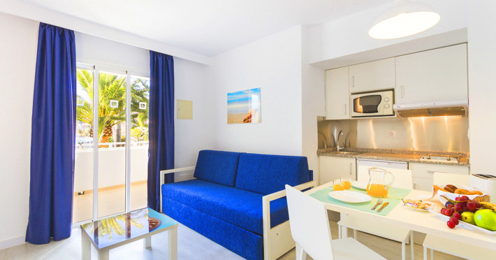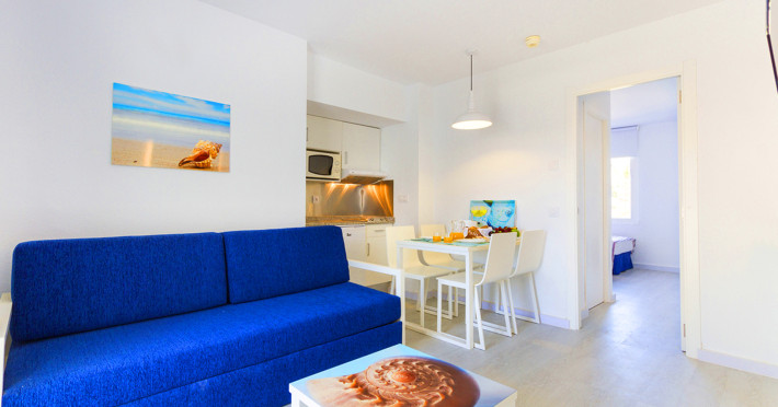The apart hotel APARTMENTS JUTLANDIA FAMILY RESORT is located approx. 300 m from a sandy beach. The hotel is equipped with a 24h reception, a lobby bar, Wi-Fi, an internet corner, a supermarket, parking spaces as well as a TV lounge. In the outdoor area of the property you will find a garden as well as a seasonally open pool, where sun loungers and sun umbrellas are available for free. There is also a children's pool. Furthermore, you can relax outdoors on the sun terrace. For the smallest children prams can be rented in the hotel. You can store your luggage in the hotel's storage room. To clean your clothes there is a laundry service (extra fee). If necessary, you can contact the medical centre (for a fee). Guests at the accommodation can get a wake-up call from the hotel personnel. If you want to explore the holiday region, you can use the car and motorbike rental service close to the hotel. Due to its barrier-free facilities , such as barrier-free entrances, the hotel is also suitable for wheelchair users. Catering As catering services the hotel offers all-inclusive. Breakfast is offered from the buffet. Lunch and dinner are also served from the buffet. For the meals, there are a buffet restaurant with terrace and the cafeteria as well as the pool bar. Distances