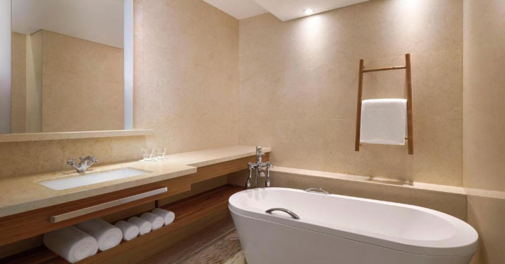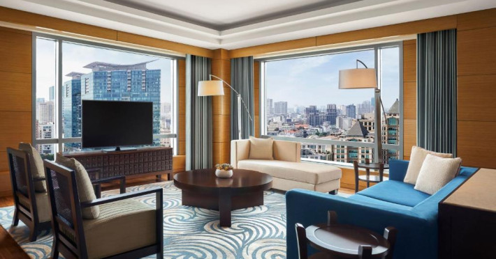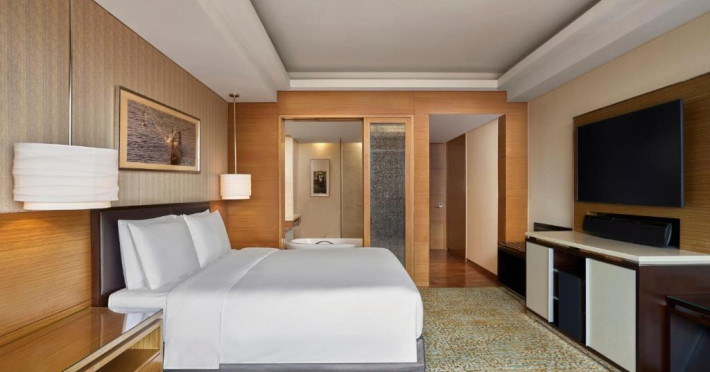 Camerele au ferestre din podea pană in tavan și băi de marmură cu duș cu efect de ploaie separat. De asemenea, camerele sunt dotate cu spațiu de lucru amplu, iPod docking station și DVD player. De asemenea, este oferit un serviciu de turndown.