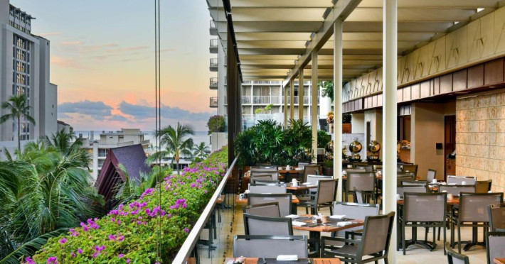 Lounge-ul Wai’olu oferă pranz, cină și cocktailuri.