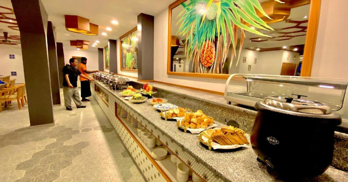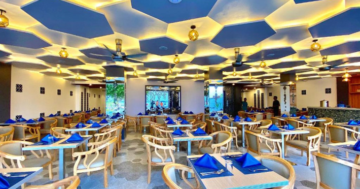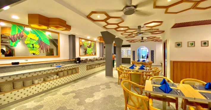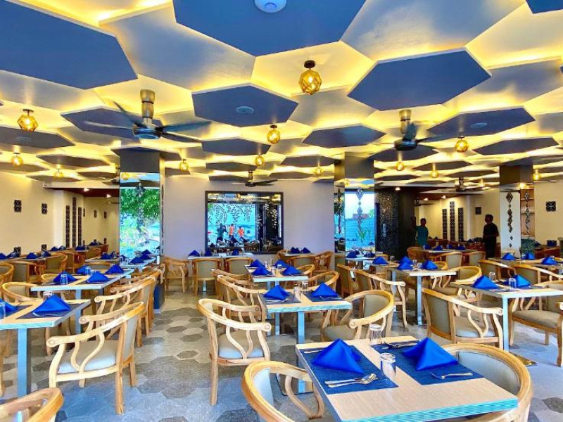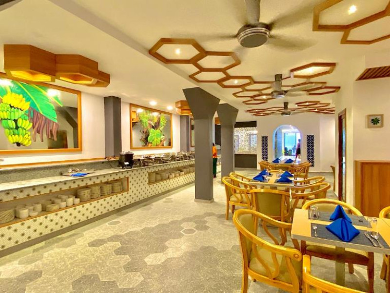 La proprietate poate savura un mic dejun tip bufet, continental sau american. Kaani Palm Beach are un restaurant care servește mancăruri din bucătăria internațională. La cerere, sunt disponibile și preparate fără lactate, halal și vegane.