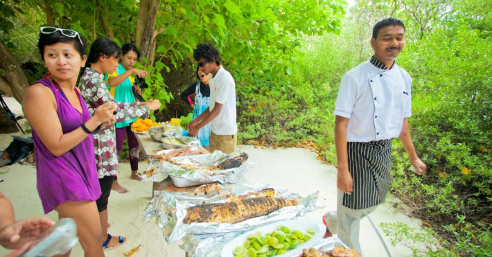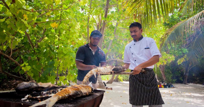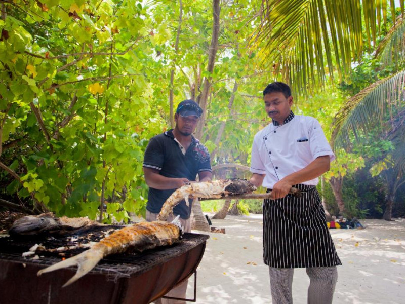 Cu vedere panoramică la mare, restaurantul hotelului servește preparate locale maldiviene și occidentale. Sunt disponibile opțiuni de room service, iar micul dejun poate fi servit in cameră la cerere.