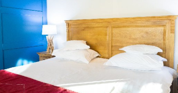 Camera dubla superioara: Camera cu suprafata de 35 mp, cu balcon, pentru doi adulti si un copil, dispusa pe doua niveluri, cu pat dublu mare in dormitorul aflat la nivelul superior si canapea la nivelul inferior.