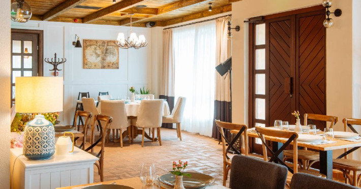 Restaurantul on-site cu o capacitate de 90 de persoane ofera bucatarie traditionala si europeana, plus o selectie de cele mai bune vinuri din podgorii romanesti si straine. Kaban organizeaza si evenimente private si corporate. Restaurantul este deschis zilnic intre orele 12:00 - 21:00.