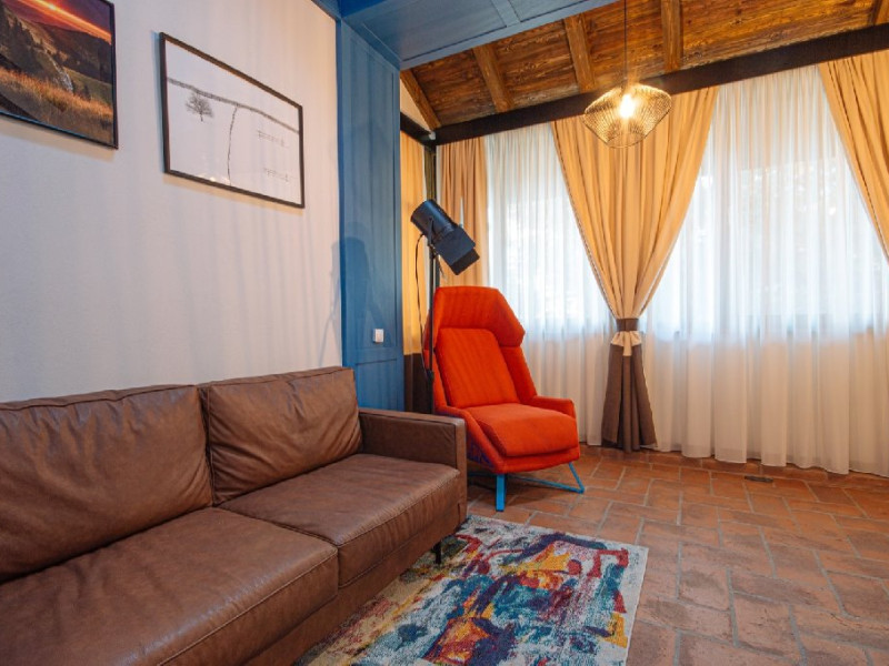 Camera dubla cu terasa - este o camera cocheta cu privelistea catre Raul Dorna, cu o terasa generoasa, situata la etajul 1 langa living. Suprafata de 30 mp.